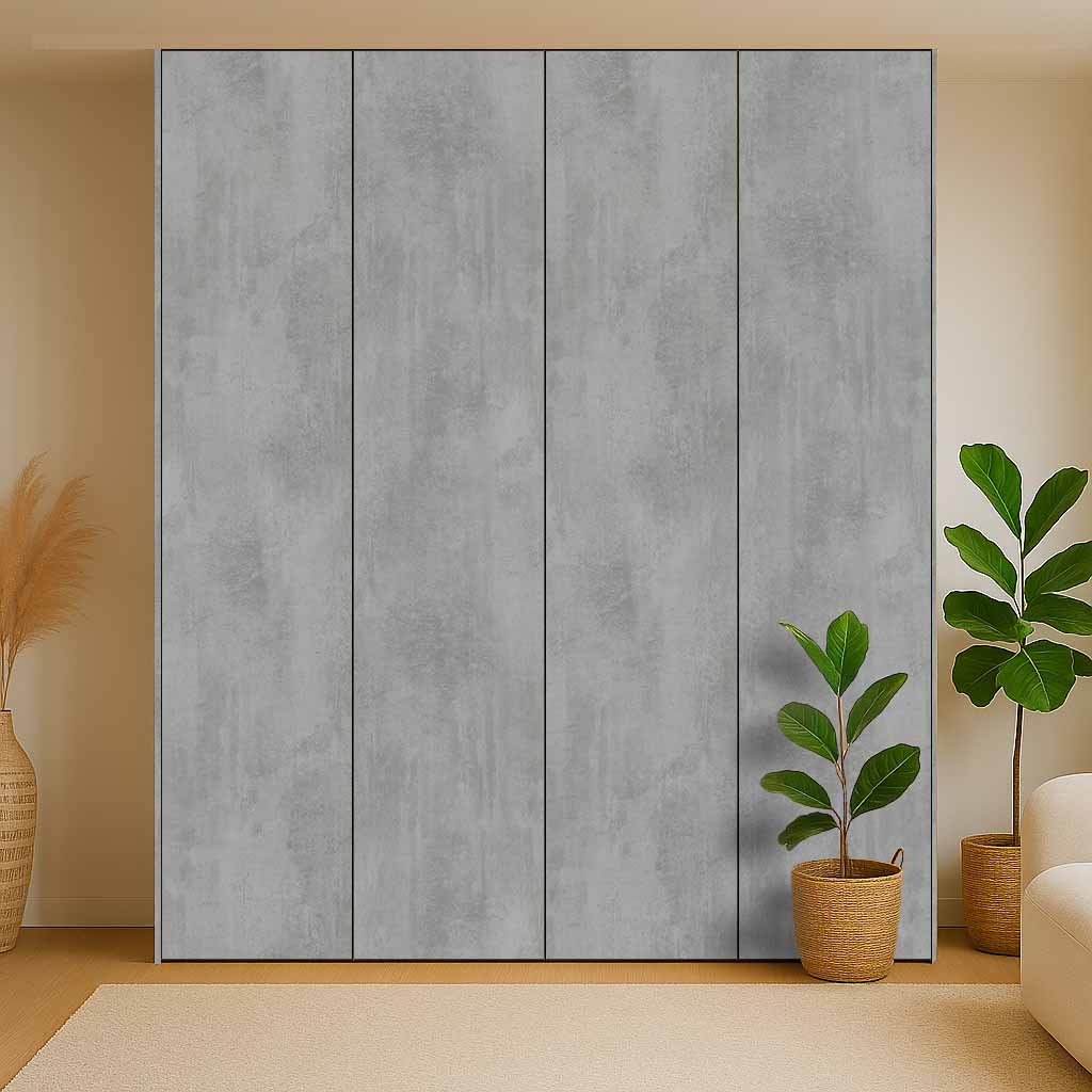 Kastdeuren op maat in Concreta Grijs (DecoLegno FB11) geven je IKEA PAX een stijlvolle, op maat gemaakte uitstraling. Concreta brengt een betonachtige uitstraling met een ruwe, matte structuur. Ideaal voor industriële en minimalistische interieurs, deze panelen bieden een urban feel die perfect aansluit bij moderne designtrends.