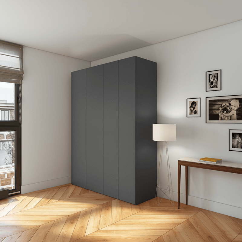 Geef jouw kledingkast een hoogwaardige uitstraling met onze maatwerk kastdeuren op maat Grafietgrijs (U963 ST15). Deze deuren worden in Nederland geproduceerd en zijn perfect afgestemd op Pax elementen van 201 of 236 cm hoog. Kies uit verschillende uitvoeringen zoals linker- of rechterdeur, hoekdeur, zijpaneel of los paneel – allemaal nauwkeurig op maat gemaakt.