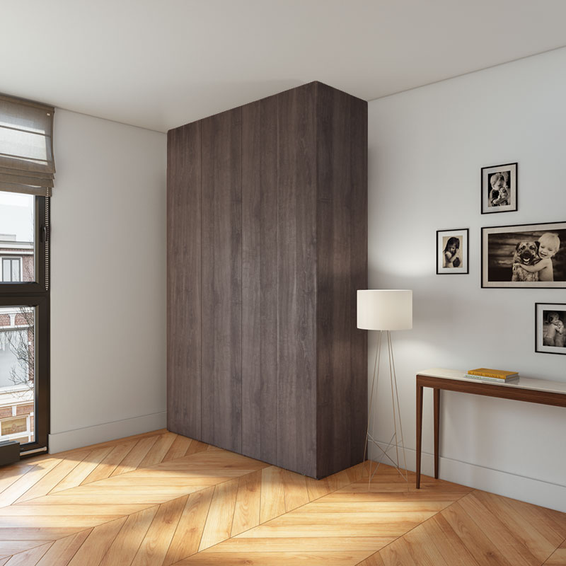 Geef jouw kledingkast een hoogwaardige uitstraling met onze maatwerk kastdeuren op maat Sherman Eik Antraciet voor Ikea Pax (H1346). Deze deuren worden in Nederland geproduceerd en zijn perfect afgestemd op Pax elementen van 201 of 236 cm hoog. Kies uit verschillende uitvoeringen zoals linker- of rechterdeur, hoekdeur, zijpaneel of los paneel – allemaal nauwkeurig op maat gemaakt.