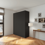 Kastdeuren op maat Zwart Eiken voor Ikea Pax (U998) geven jouw Ikea Pax kast de verfijnde uitstraling van een echte maatkast. Door te kiezen voor deuren die optisch van vloer tot plafond doorlopen ontstaat een bijzonder luxe en stijlvolle look. De hoogwaardige zwarte eiken afwerking met voelbare houtstructuur straalt tijdloze klasse uit en combineert prachtig met lichte muren, metalen accenten of natuursteen. Alle deuren worden in Nederland geproduceerd en sluiten perfect aan op Ikea Pax kasten van 201 of 236 cm hoog. Verkrijgbaar als linker of rechterdeur, hoekdeur, zijpaneel of los paneel, tot op de millimeter nauwkeurig op maat gemaakt.