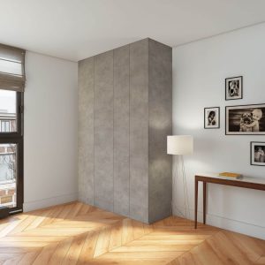 De populairste keuze: een strak mat oppervlak (Smoothtouch Matt) zonder glans of structuur. Deze variant oogt rustig en modern, en is door zijn krasvastheid zeer geschikt voor kastdeuren, zijpanelen en afwerkingen in het zicht.