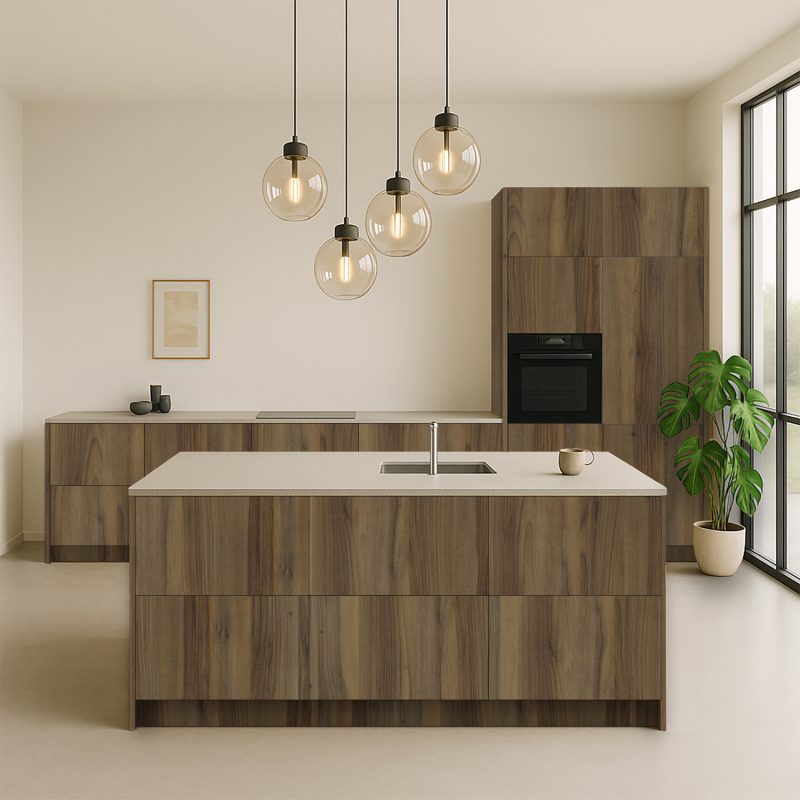 Altamira walnoot donker (R30013 NW) Keukenfrontjes voor IKEA Metod® van Elswout meubels®. Uniek Notenhout decor voor uw keukendeuren welke in Nederland op maat worden gezaagd en gefreesd. Onze CNC programma’s zijn zo ingesteld dat alle keukenfrontjes precies passen op de kastframes van Ikea Metod en de scharnieren van IKEA.