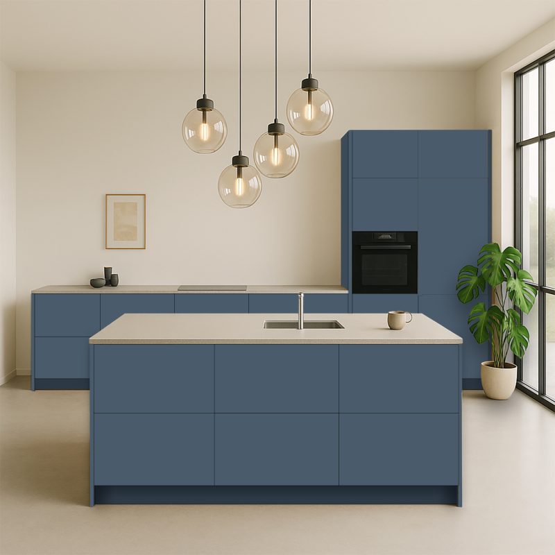 Baltisch Blauw (U545 ST9) Keukenfrontjes voor IKEA Metod® van Elswout meubels®. Uniek blauw decor voor uw keukendeuren welke in Nederland op maat worden gezaagd en gefreesd. Onze CNC programma’s zijn zo ingesteld dat alle keukenfrontjes precies passen op de kastframes van Ikea Metod en de scharnieren van IKEA.