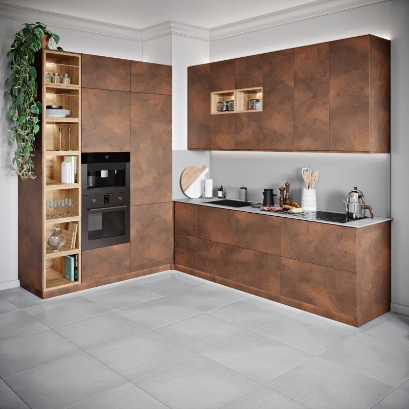 DC Corthenstahl 45274 Deep Crystal (DC) Keukenfrontjes voor IKEA Metod® van Elswout meubels®. Uniek Metaaldecor decor voor uw keukendeuren welke in Nederland op maat worden gezaagd en gefreesd. Onze CNC programma’s zijn zo ingesteld dat alle keukenfrontjes precies passen op de kastframes van Ikea Metod en de scharnieren van IKEA.