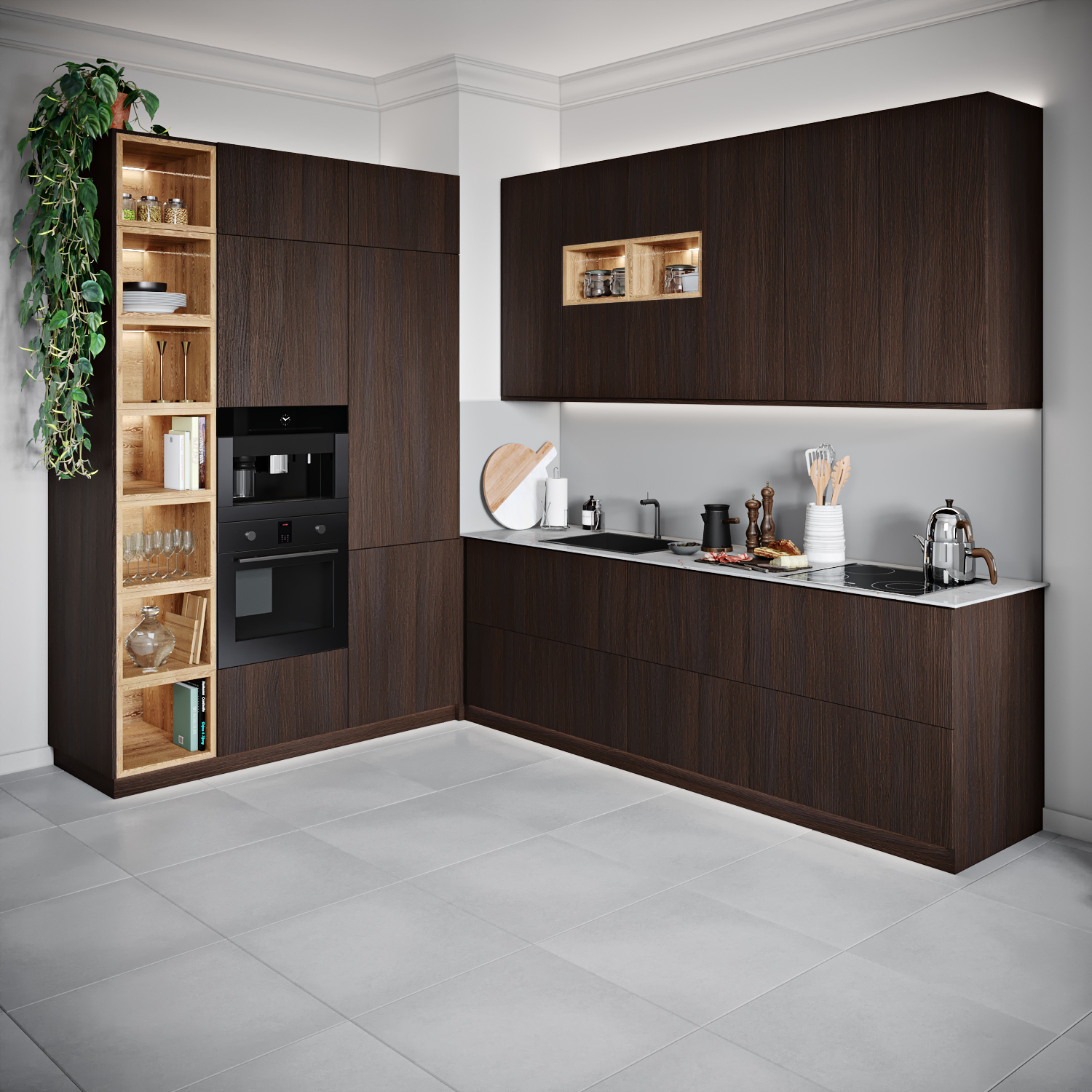 Eiken Donker (R20033 NW) Keukenfrontjes voor IKEA Metod® van Elswout meubels®. Uniek Eiken decor voor uw keukendeuren welke in Nederland op maat worden gezaagd en gefreesd. Onze CNC programma’s zijn zo ingesteld dat alle keukenfrontjes precies passen op de kastframes van Ikea Metod en de scharnieren van IKEA.