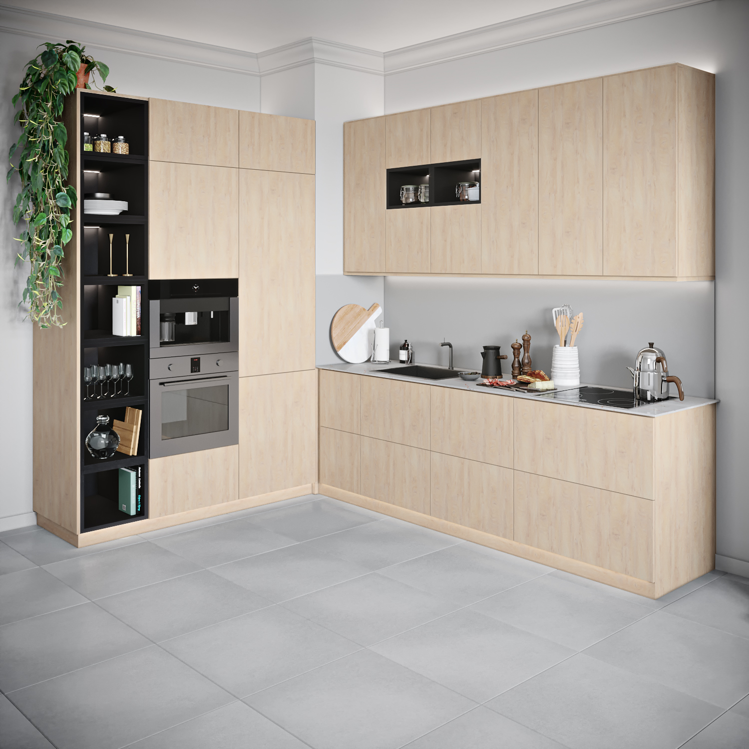 Eiken Endgrain Elegance K5415 ENDgrain Oak (RO) Keukenfrontjes voor IKEA Metod® van Elswout meubels®. Uniek Eiken decor voor uw keukendeuren welke in Nederland op maat worden gezaagd en gefreesd. Onze CNC programma’s zijn zo ingesteld dat alle keukenfrontjes precies passen op de kastframes van Ikea Metod en de scharnieren van IKEA.