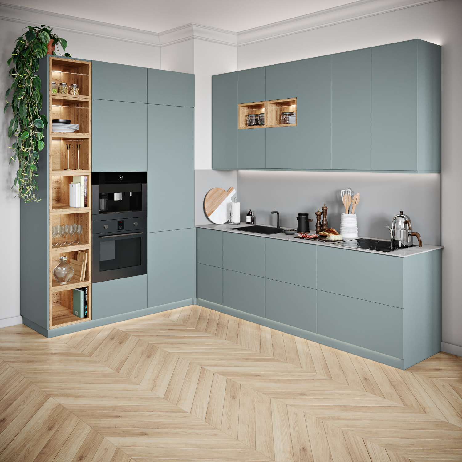 Fjord Groen (U636 ST9) Keukenfrontjes voor IKEA Metod® van Elswout meubels®. Uniek Groen decor voor uw keukendeuren welke in Nederland op maat worden gezaagd en gefreesd. Onze CNC programma’s zijn zo ingesteld dat alle keukenfrontjes precies passen op de kastframes van Ikea Metod en de scharnieren van IKEA.