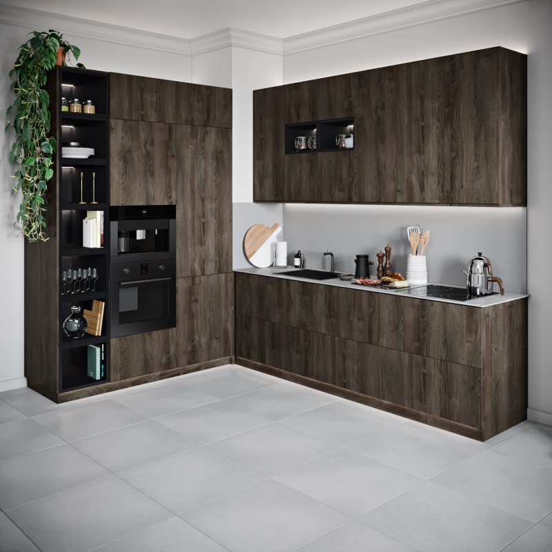 Gladstone Sepia Eiken (H3342 ST28) Keukenfrontjes voor IKEA Metod® van Elswout meubels®. Uniek Eiken decor voor uw keukendeuren welke in Nederland op maat worden gezaagd en gefreesd. Onze CNC programma’s zijn zo ingesteld dat alle keukenfrontjes precies passen op de kastframes van Ikea Metod en de scharnieren van IKEA.
