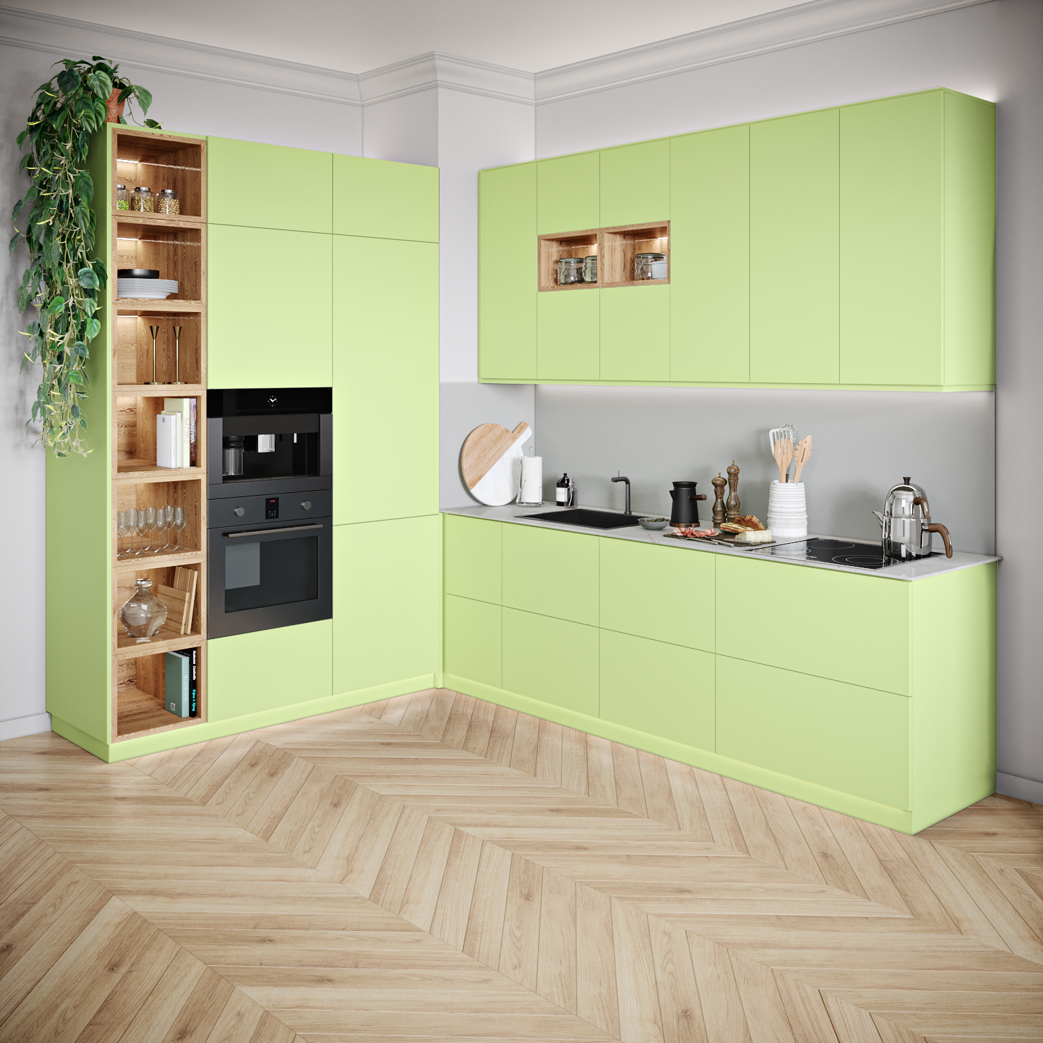 Lelie (U19506 SD) Keukenfrontjes voor IKEA Metod® van Elswout meubels®. Uniek Groen decor voor uw keukendeuren welke in Nederland op maat worden gezaagd en gefreesd. Onze CNC programma’s zijn zo ingesteld dat alle keukenfrontjes precies passen op de kastframes van Ikea Metod en de scharnieren van IKEA.