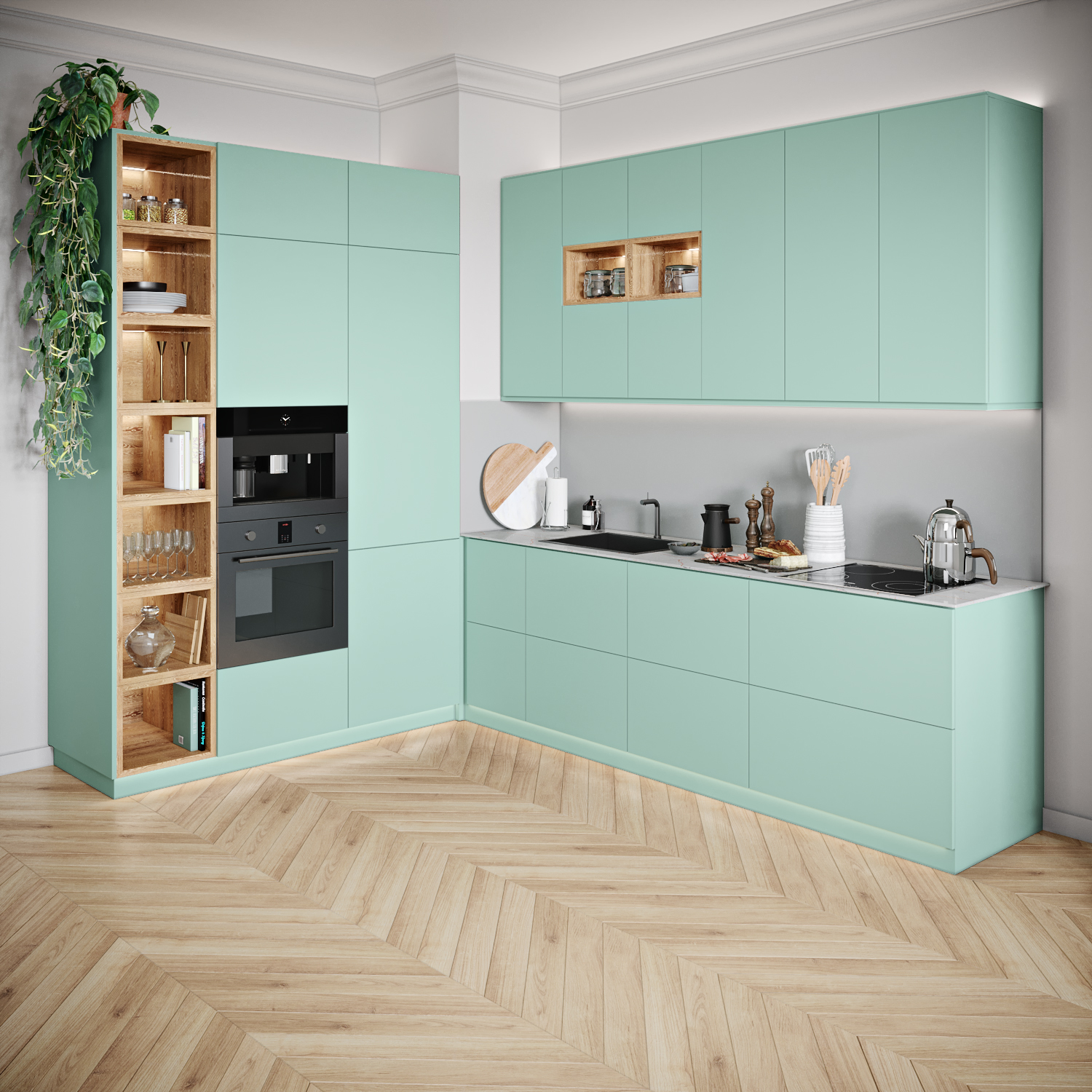 Mint (U19006 SD) Keukenfrontjes voor IKEA Metod® van Elswout meubels®. Uniek Groen decor voor uw keukendeuren welke in Nederland op maat worden gezaagd en gefreesd. Onze CNC programma’s zijn zo ingesteld dat alle keukenfrontjes precies passen op de kastframes van Ikea Metod en de scharnieren van IKEA.