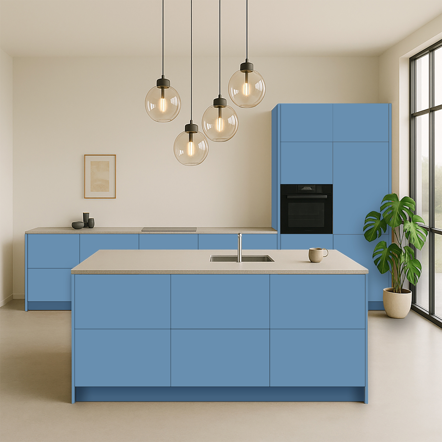 Noordpoolblauw (U18002 SD) Keukenfrontjes voor IKEA Metod® van Elswout meubels®. Uniek Blauw decor voor uw keukendeuren welke in Nederland op maat worden gezaagd en gefreesd. Onze CNC programma’s zijn zo ingesteld dat alle keukenfrontjes precies passen op de kastframes van Ikea Metod en de scharnieren van IKEA.