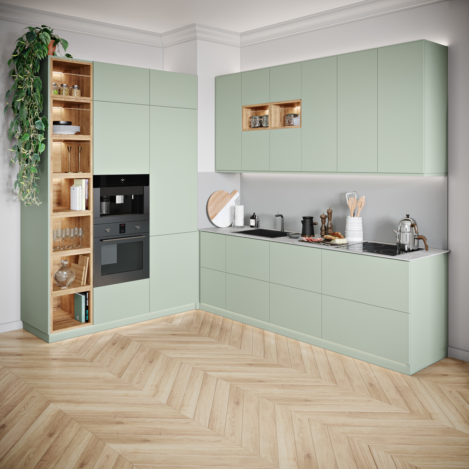 Salbei U19014 SD) Keukenfrontjes voor IKEA Metod® van Elswout meubels®. Uniek Groen decor voor uw keukendeuren welke in Nederland op maat worden gezaagd en gefreesd. Onze CNC programma’s zijn zo ingesteld dat alle keukenfrontjes precies passen op de kastframes van Ikea Metod en de scharnieren van IKEA.