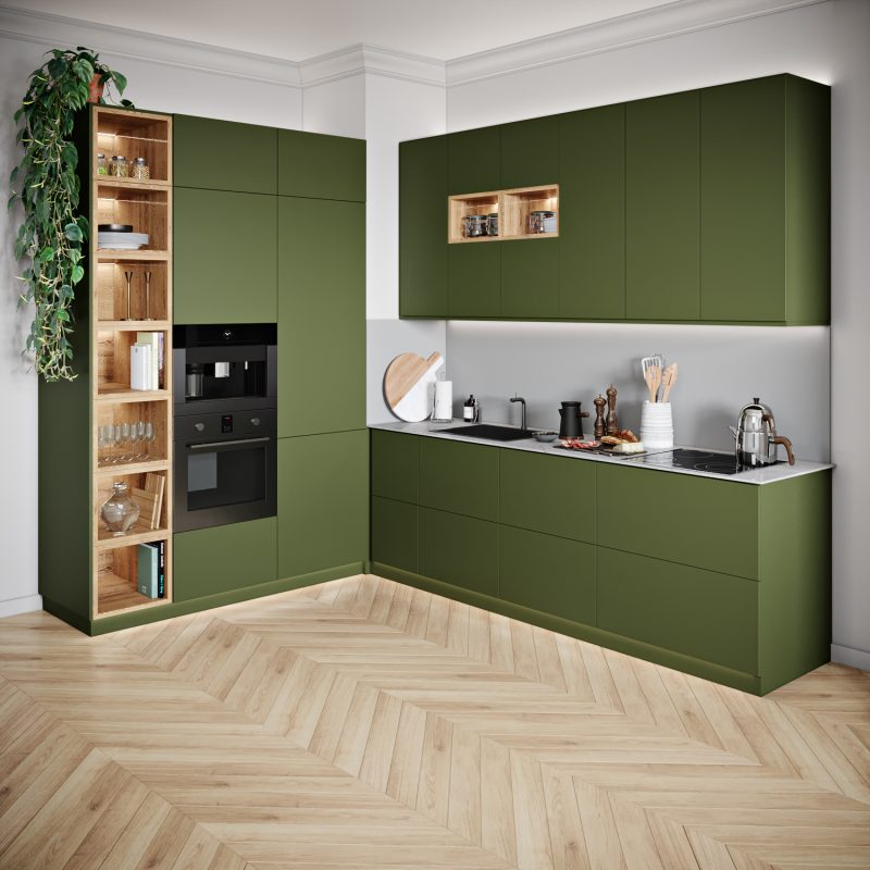 Mosgroen (25736 NM) Keukenfrontjes voor IKEA Metod® van Elswout meubels®. Uniek Groen decor voor uw keukendeuren welke in Nederland op maat worden gezaagd en gefreesd. Onze CNC programma’s zijn zo ingesteld dat alle keukenfrontjes precies passen op de kastframes van Ikea Metod en de scharnieren van IKEA.